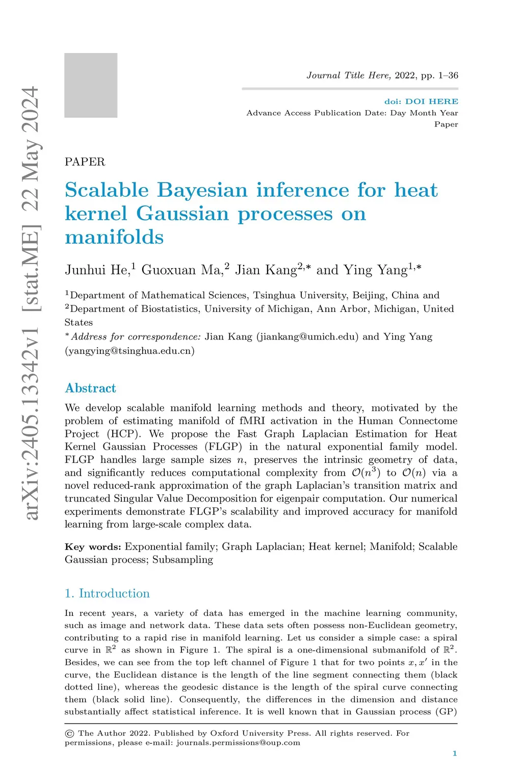 We develop scalable manifold learning methods and theory, motivated by the problem of estimating manifold of fMRI activation in the Human Connectome Project (HCP). We propose the Fast Graph Laplacian Estimation for Heat Kernel Gaussian Processes (FLGP) in the natural exponential family model. FLGP handles large sample sizes $ n $, preserves the intrinsic geometry of data, and significantly reduces computational complexity from $ \mathcal{O}(n^3) $ to $ \mathcal{O}(n) $ via a novel reduced-rank approximation of the graph Laplacian's transition matrix and truncated Singular Value Decomposition for eigenpair computation. Our numerical experiments demonstrate FLGP's scalability and improved accuracy for manifold learning from large-scale complex data.