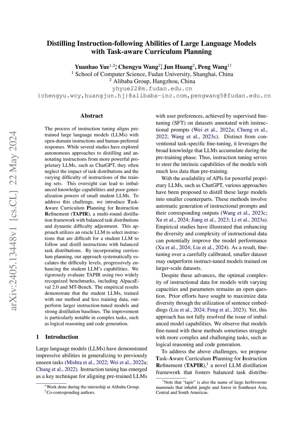 The process of instruction tuning aligns pre-trained large language models (LLMs) with open-domain instructions and human-preferred responses. While several studies have explored autonomous approaches to distilling and annotating instructions from more powerful proprietary LLMs, such as ChatGPT, they often neglect the impact of task distributions and the varying difficulty of instructions of the training sets. This oversight can lead to imbalanced knowledge capabilities and poor generalization powers of small student LLMs. To address this challenge, we introduce Task-Aware Curriculum Planning for Instruction Refinement (TAPIR), a multi-round distillation framework with balanced task distributions and dynamic difficulty adjustment. This approach utilizes an oracle LLM to select instructions that are difficult for a student LLM to follow and distill instructions with balanced task distributions. By incorporating curriculum planning, our approach systematically escalates the difficulty levels, progressively enhancing the student LLM's capabilities. We rigorously evaluate TAPIR using two widely recognized benchmarks, including AlpacaEval 2.0 and MT-Bench. The empirical results demonstrate that the student LLMs, trained with our method and less training data, outperform larger instruction-tuned models and strong distillation baselines. The improvement is particularly notable in complex tasks, such as logical reasoning and code generation.