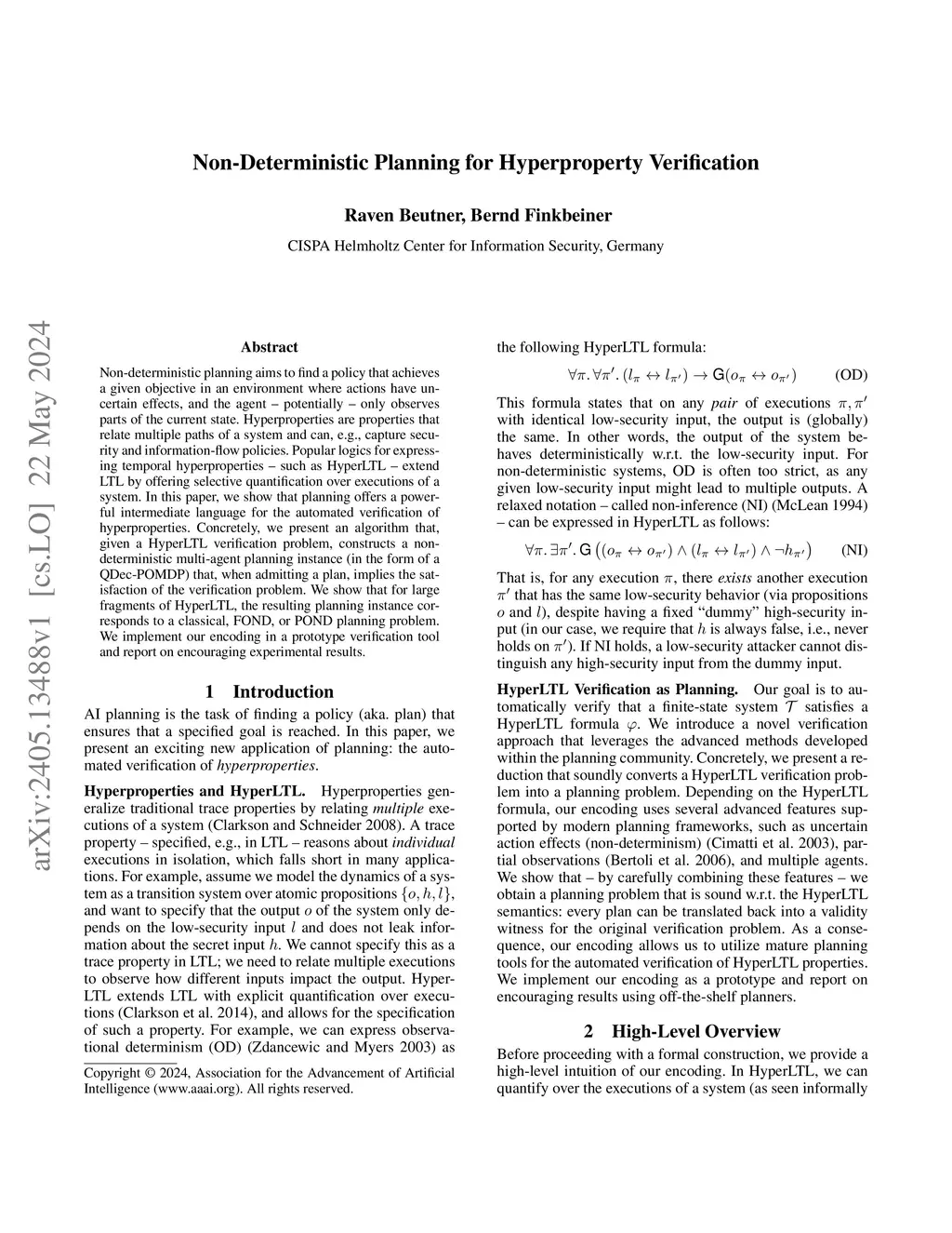 Non-Deterministic Planning for Hyperproperty Verification
