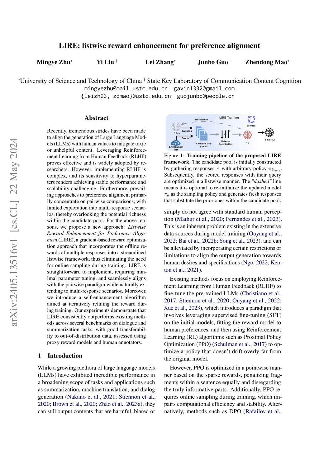 LIRE: listwise reward enhancement for preference alignment