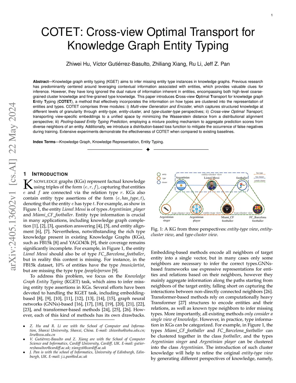 COTET: Cross-view Optimal Transport for Knowledge Graph Entity Typing