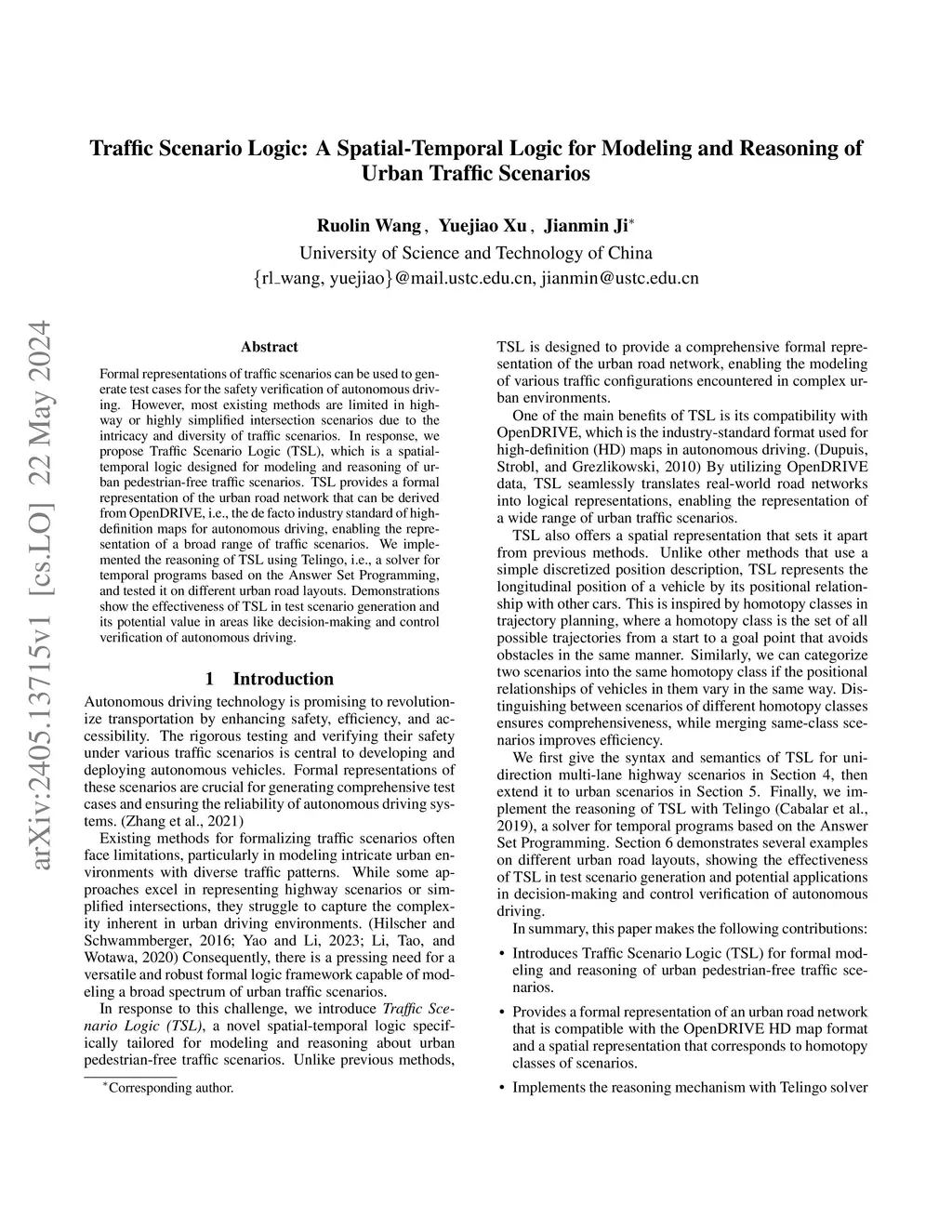 Traffic Scenario Logic: A Spatial-Temporal Logic for Modeling and Reasoning of Urban Traffic Scenarios