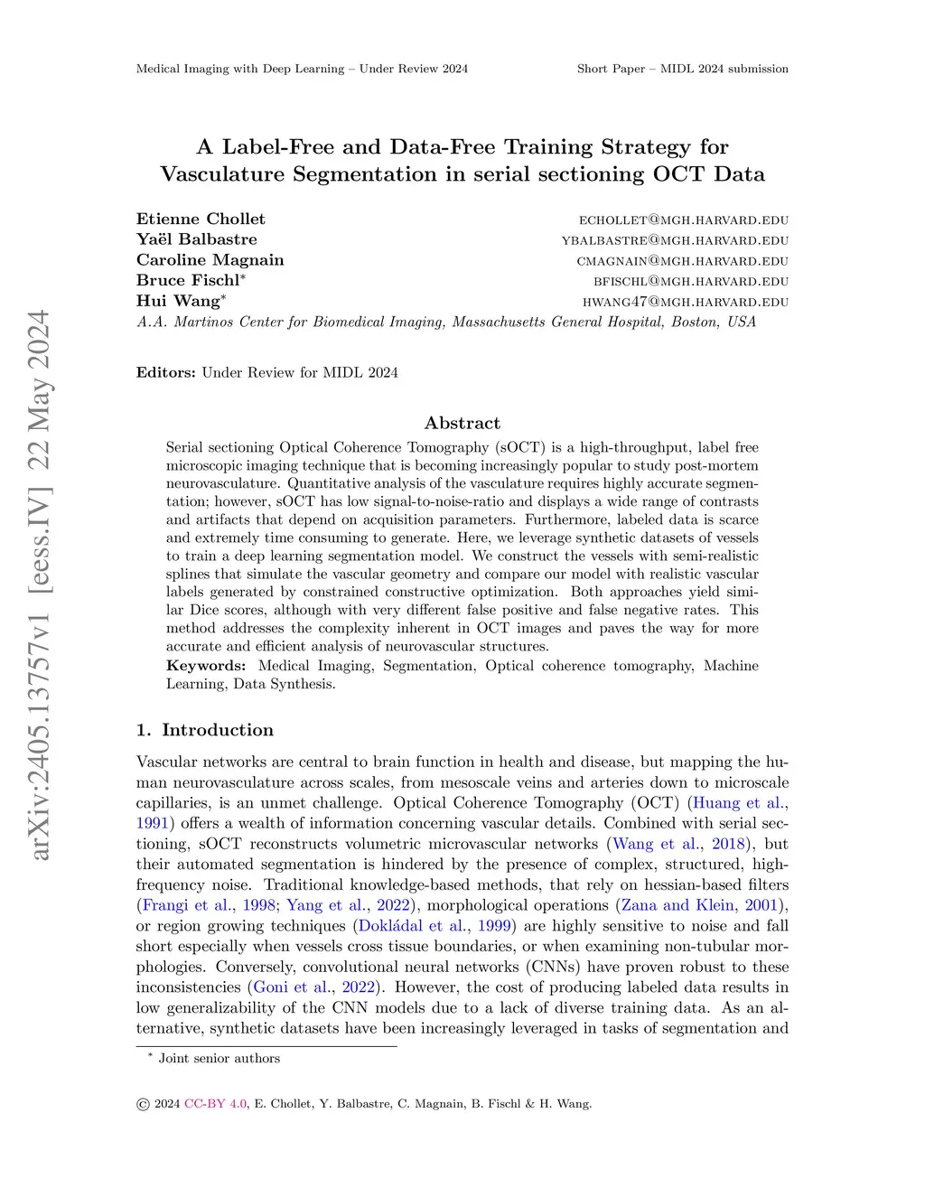A label-free and data-free training strategy for vasculature