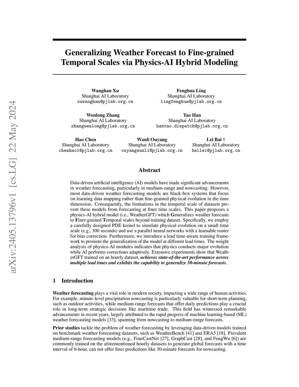 Generalizing Weather Forecast to Fine-grained Temporal Scales via Physics-AI Hybrid Modeling