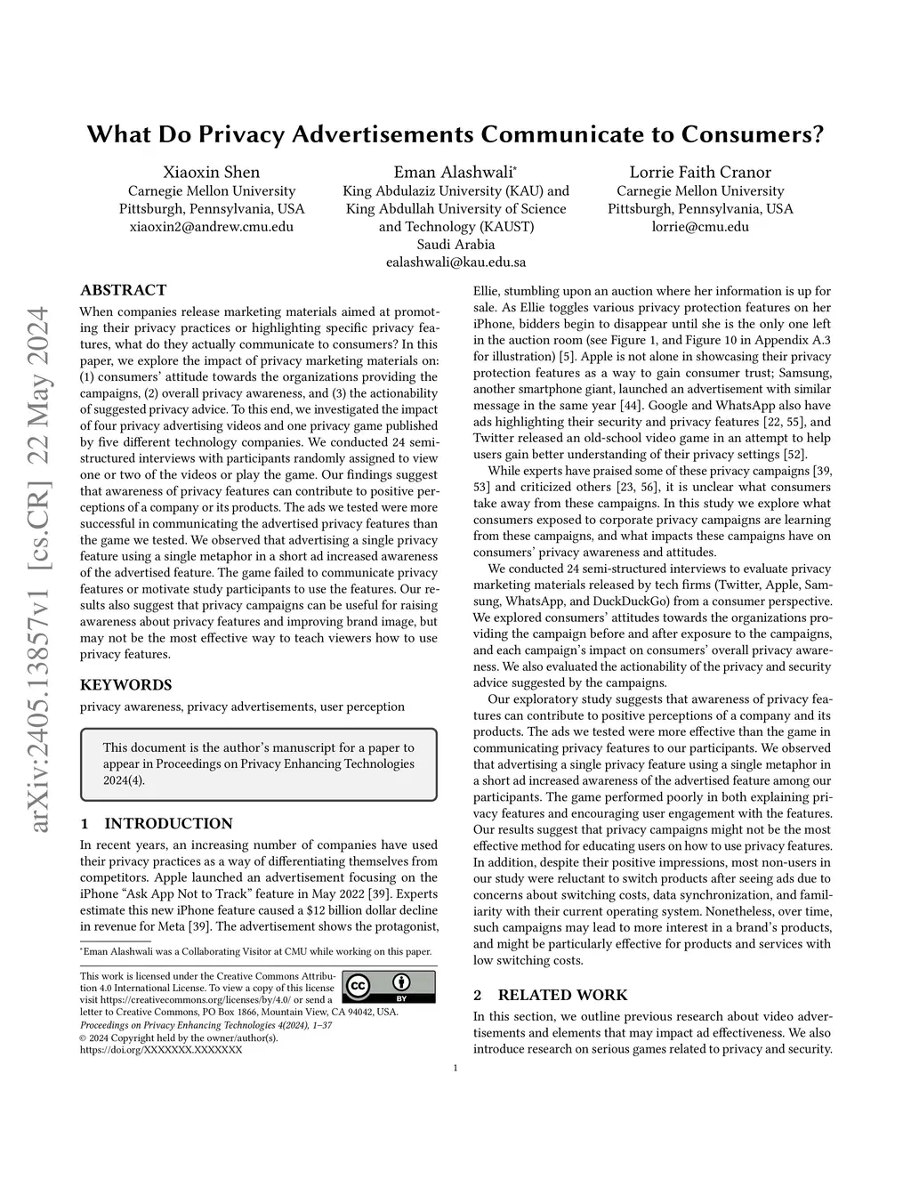 What Do Privacy Advertisements Communicate to Consumers?