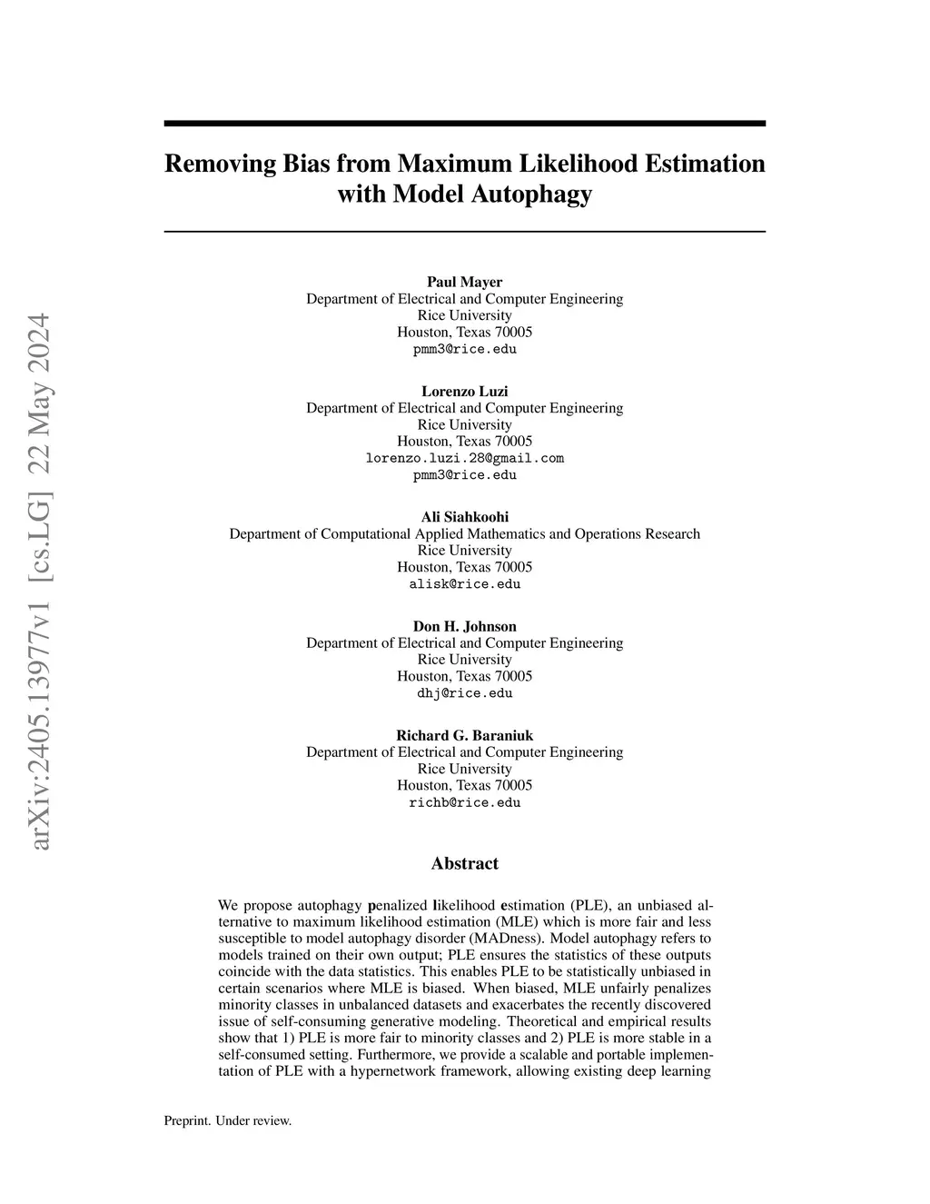 We propose autophagy penalized likelihood estimation (PLE), an unbiased alternative to maximum likelihood estimation (MLE) which is more fair and less susceptible to model autophagy disorder (madness). Model autophagy refers to models trained on their own output; PLE ensures the statistics of these outputs coincide with the data statistics. This enables PLE to be statistically unbiased in certain scenarios where MLE is biased. When biased, MLE unfairly penalizes minority classes in unbalanced datasets and exacerbates the recently discovered issue of self-consuming generative modeling. Theoretical and empirical results show that 1) PLE is more fair to minority classes and 2) PLE is more stable in a self-consumed setting. Furthermore, we provide a scalable and portable implementation of PLE with a hypernetwork framework, allowing existing deep learning architectures to be easily trained with PLE. Finally, we show PLE can bridge the gap between Bayesian and frequentist paradigms in statistics.