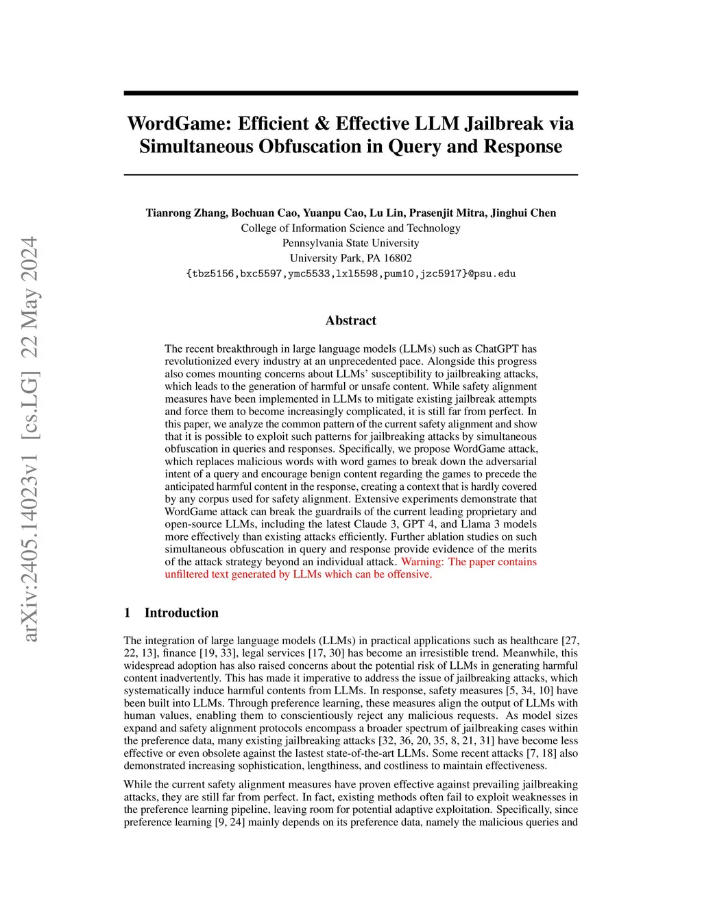 WordGame: Efficient & Effective LLM Jailbreak via Simultaneous