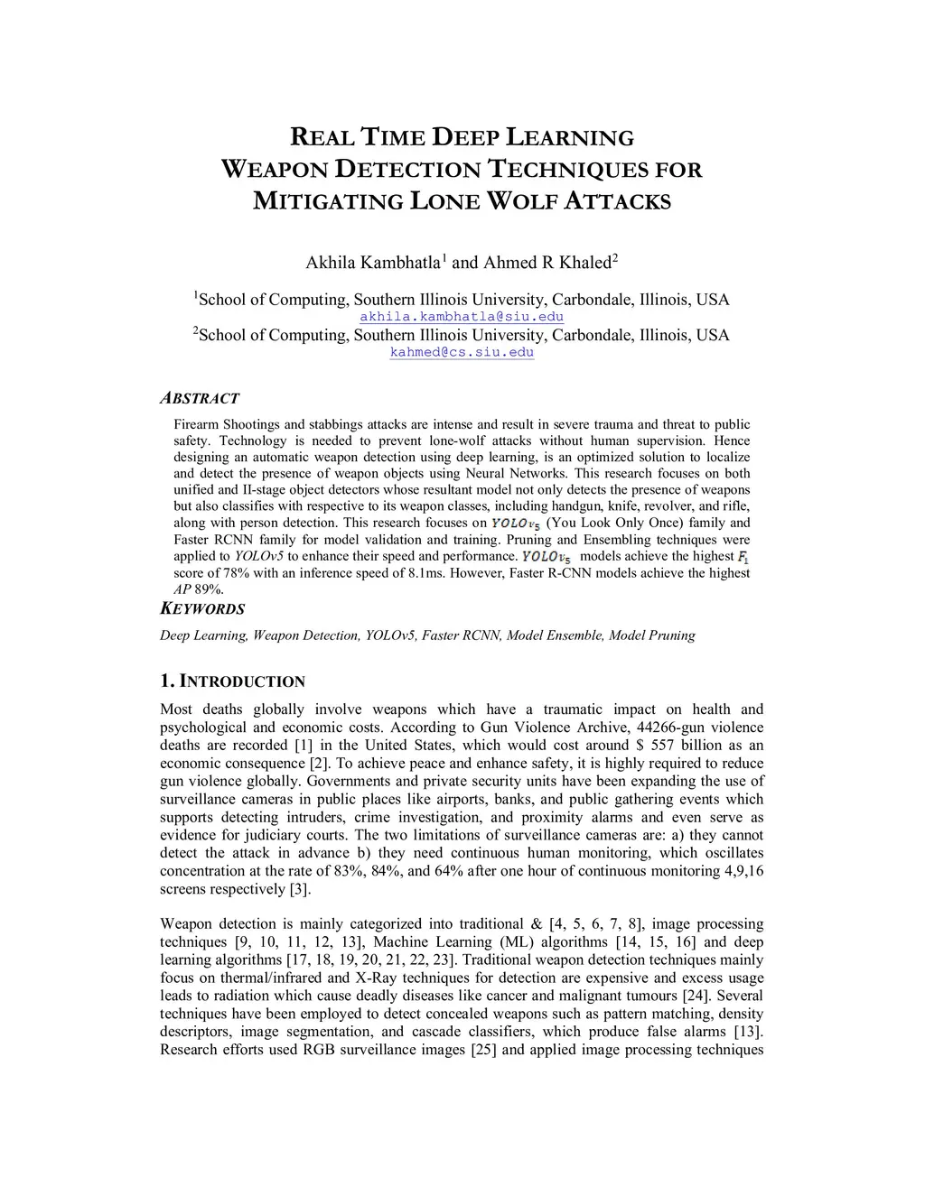 Real Time Deep Learning Weapon Detection Techniques for Mitigating Lone