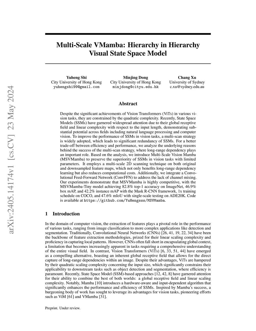 Multi-Scale VMamba: Hierarchy in Hierarchy Visual State Space Model