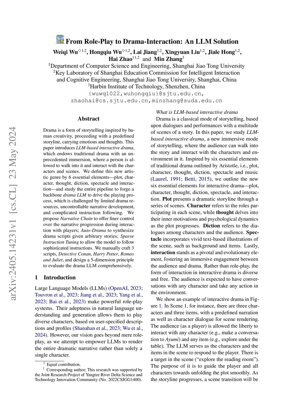 From Role-Play to Drama-Interaction: An LLM Solution