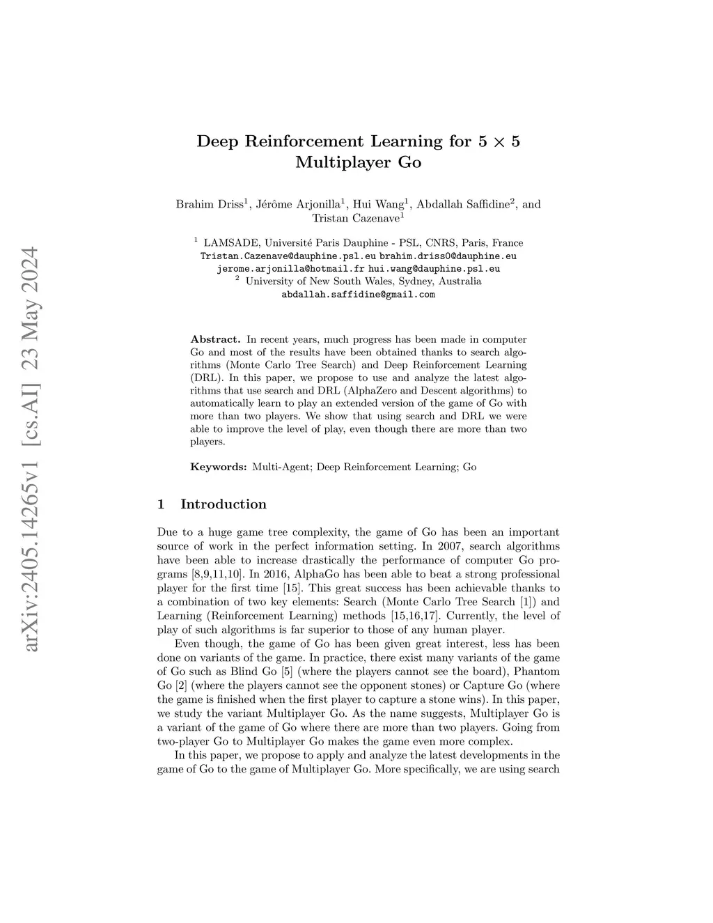 Deep Reinforcement Learning for 5*5 Multiplayer Go