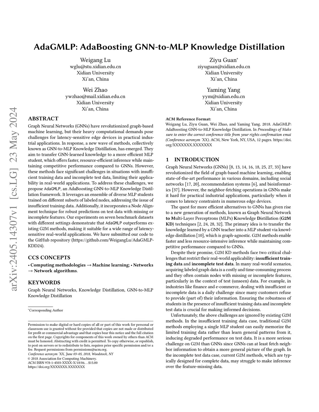 Graph Neural Networks (GNNs) have revolutionized graph-based machine learning, but their heavy computational demands pose challenges for latency-sensitive edge devices in practical industrial applications. In response, a new wave of methods, collectively known as GNN-to-MLP Knowledge Distillation, has emerged. They aim to transfer GNN-learned knowledge to a more efficient MLP student, which offers faster, resource-efficient inference while maintaining competitive performance compared to GNNs. However, these methods face significant challenges in situations with insufficient training data and incomplete test data, limiting their applicability in real-world applications. To address these challenges, we propose AdaGMLP, an AdaBoosting GNN-to-MLP Knowledge Distillation framework. It leverages an ensemble of diverse MLP students trained on different subsets of labeled nodes, addressing the issue of insufficient training data. Additionally, it incorporates a Node Alignment technique for robust predictions on test data with missing or incomplete features. Our experiments on seven benchmark datasets with different settings demonstrate that AdaGMLP outperforms existing G2M methods, making it suitable for a wide range of latency-sensitive real-world applications. We have submitted our code to the GitHub repository (https://github.com/WeigangLu/AdaGMLP-KDD24).