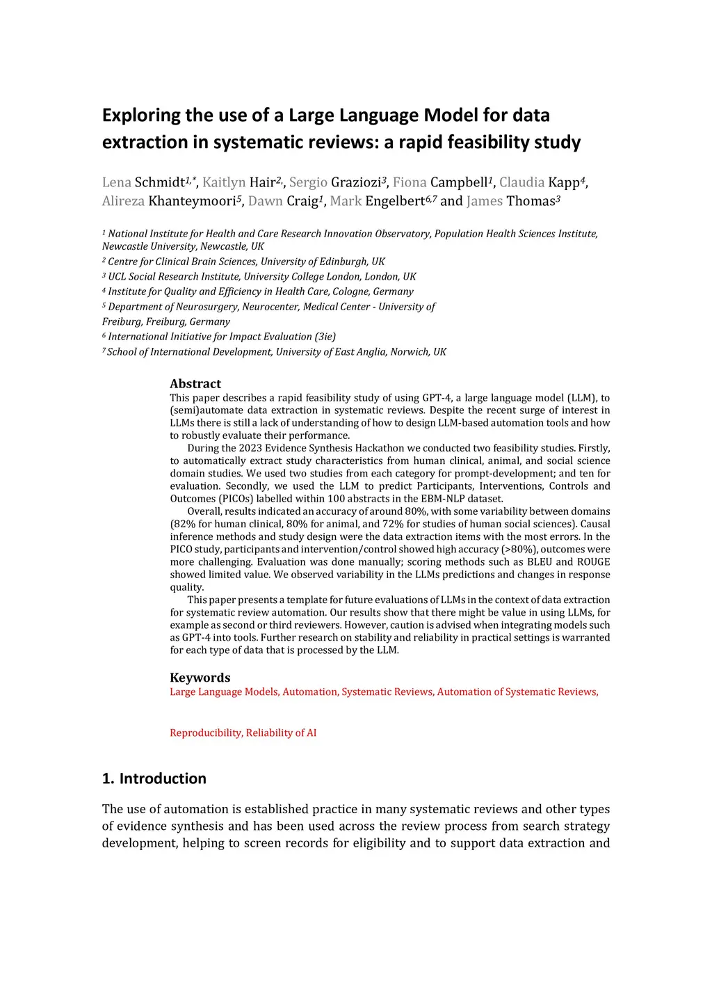 Exploring the use of a Large Language Model for data extraction in systematic reviews: a rapid feasibility study