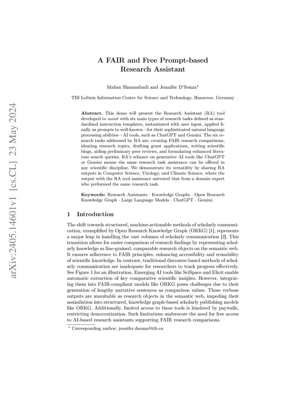 A FAIR and Free Prompt-based Research Assistant