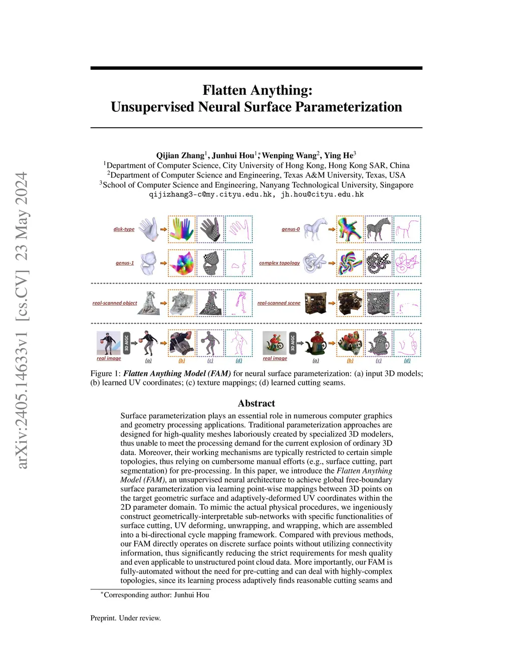 Surface parameterization plays an essential role in numerous computer graphics and geometry processing applications. Traditional parameterization approaches are designed for high-quality meshes laboriously created by specialized 3D modelers, thus unable to meet the processing demand for the current explosion of ordinary 3D data. Moreover, their working mechanisms are typically restricted to certain simple topologies, thus relying on cumbersome manual efforts (e.g., surface cutting, part segmentation) for pre-processing. In this paper, we introduce the Flatten Anything Model (FAM), an unsupervised neural architecture to achieve global free-boundary surface parameterization via learning point-wise mappings between 3D points on the target geometric surface and adaptively-deformed UV coordinates within the 2D parameter domain. To mimic the actual physical procedures, we ingeniously construct geometrically-interpretable sub-networks with specific functionalities of surface cutting, UV deforming, unwrapping, and wrapping, which are assembled into a bi-directional cycle mapping framework. Compared with previous methods, our FAM directly operates on discrete surface points without utilizing connectivity information, thus significantly reducing the strict requirements for mesh quality and even applicable to unstructured point cloud data. More importantly, our FAM is fully-automated without the need for pre-cutting and can deal with highly-complex topologies, since its learning process adaptively finds reasonable cutting seams and UV boundaries. Extensive experiments demonstrate the universality, superiority, and inspiring potential of our proposed neural surface parameterization paradigm. The code will be publicly available.