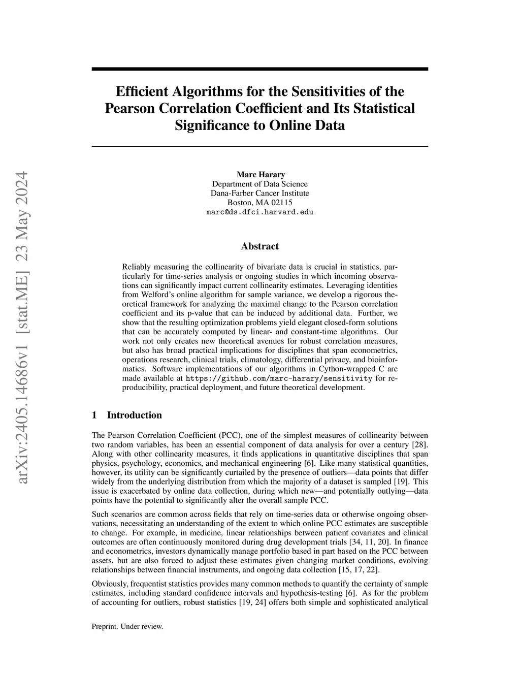 coefficient and its statistical significance to online data