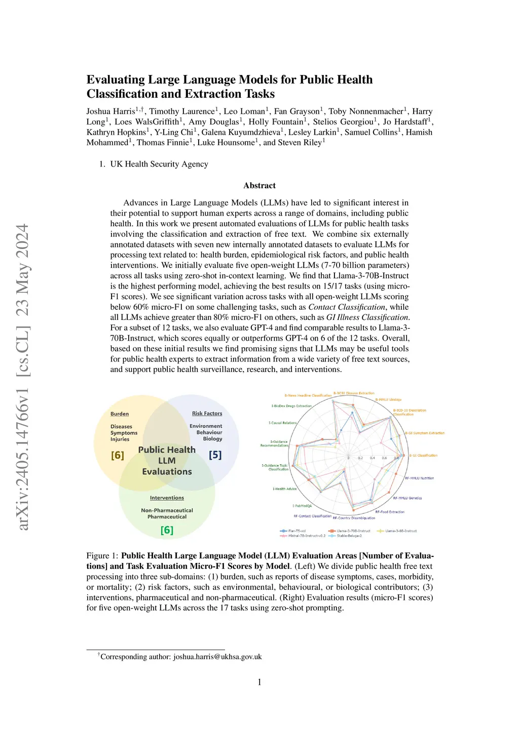 Evaluating Large Language Models for Public Health Classification and Extraction Tasks