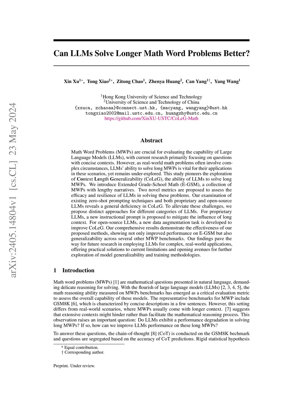 Can LLMs Solve longer Math Word Problems Better?