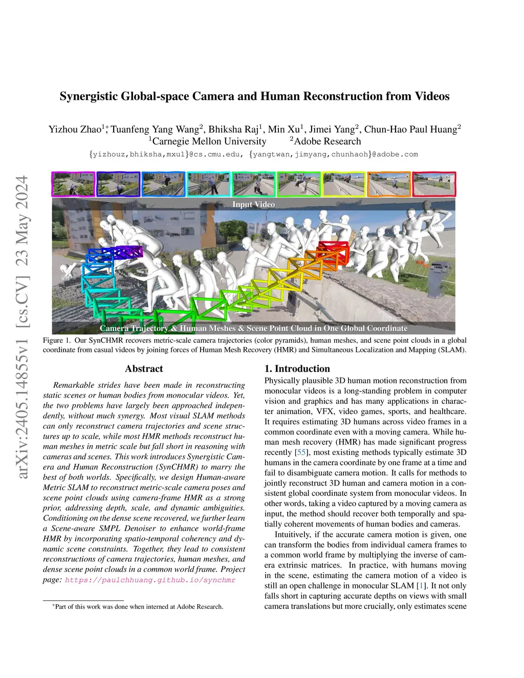 Synergistic Global-space Camera and Human Reconstruction from Videos