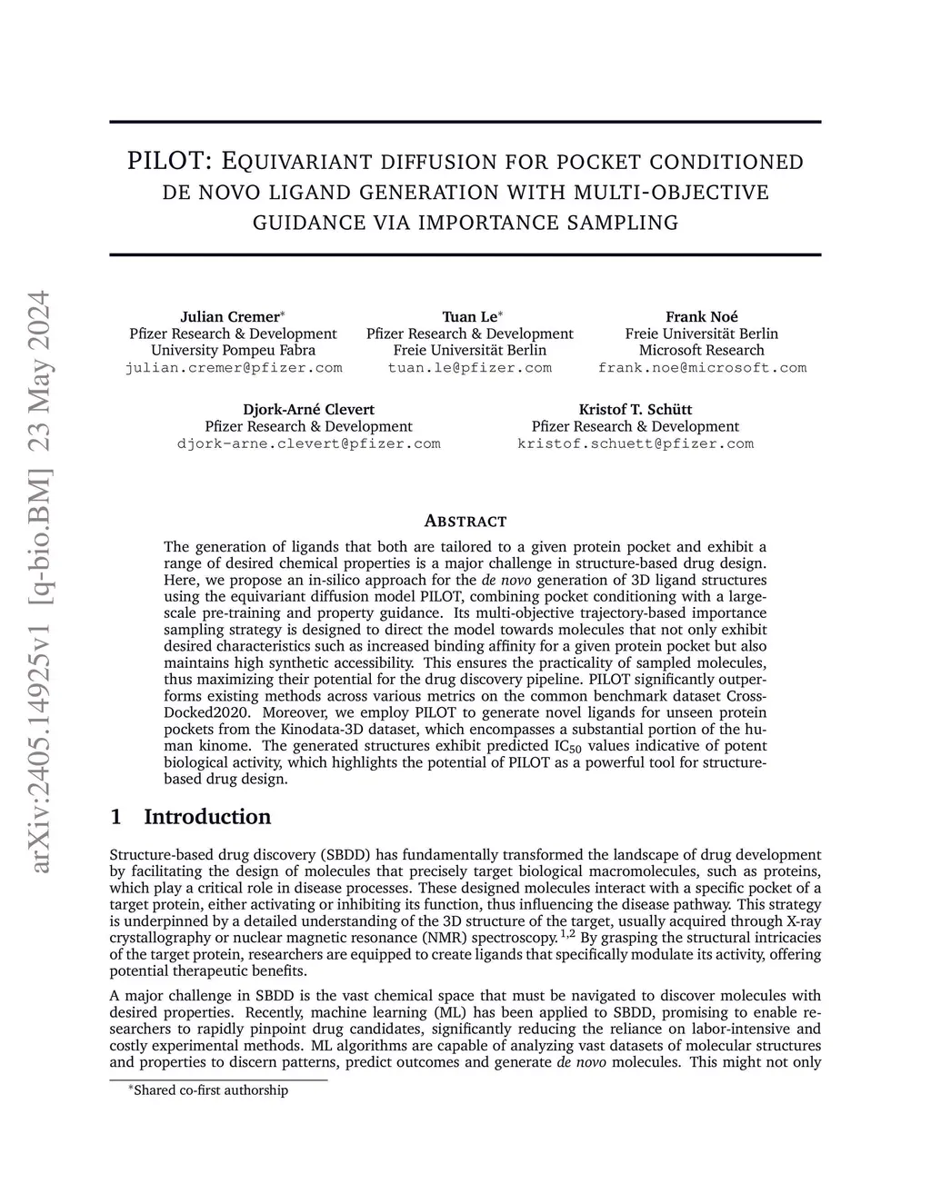 PILOT: Equivariant diffusion for pocket conditioned de novo ligand