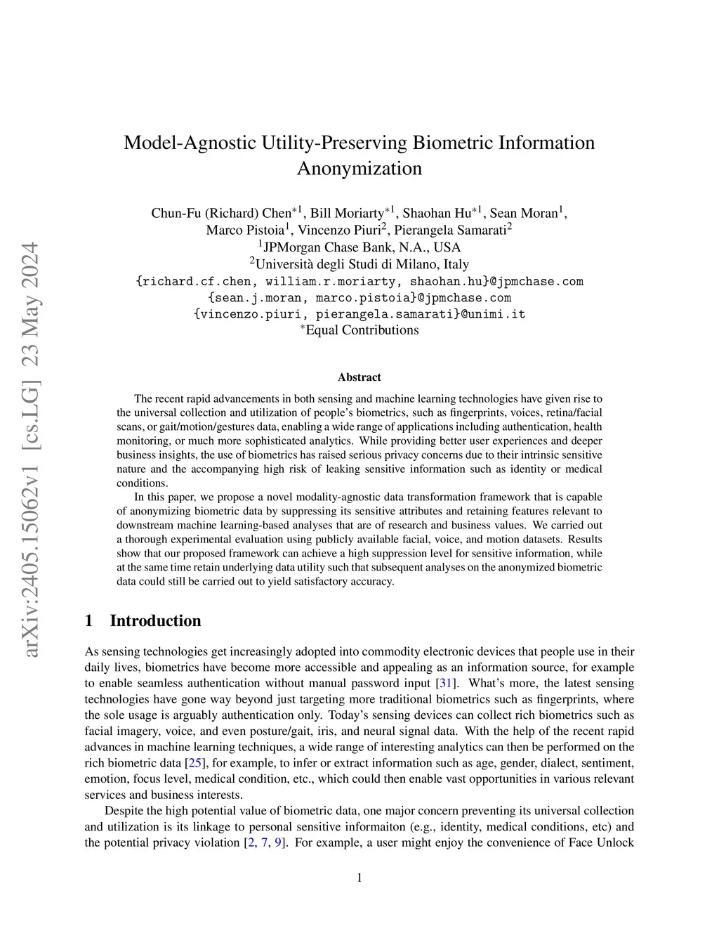Model-Agnostic Utility-Preserving Biometric Information Anonymization