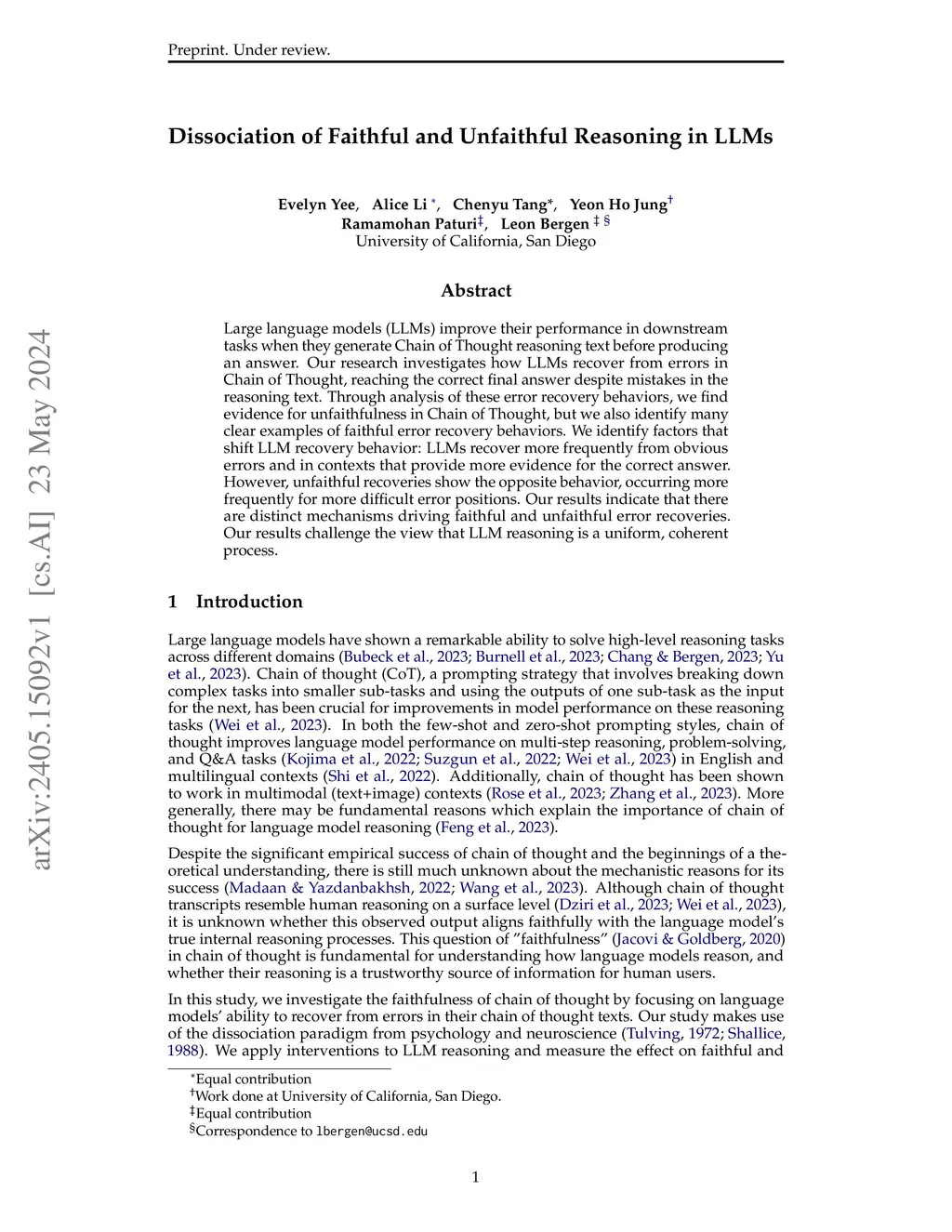 Dissociation of Faithful and Unfaithful Reasoning in LLMs