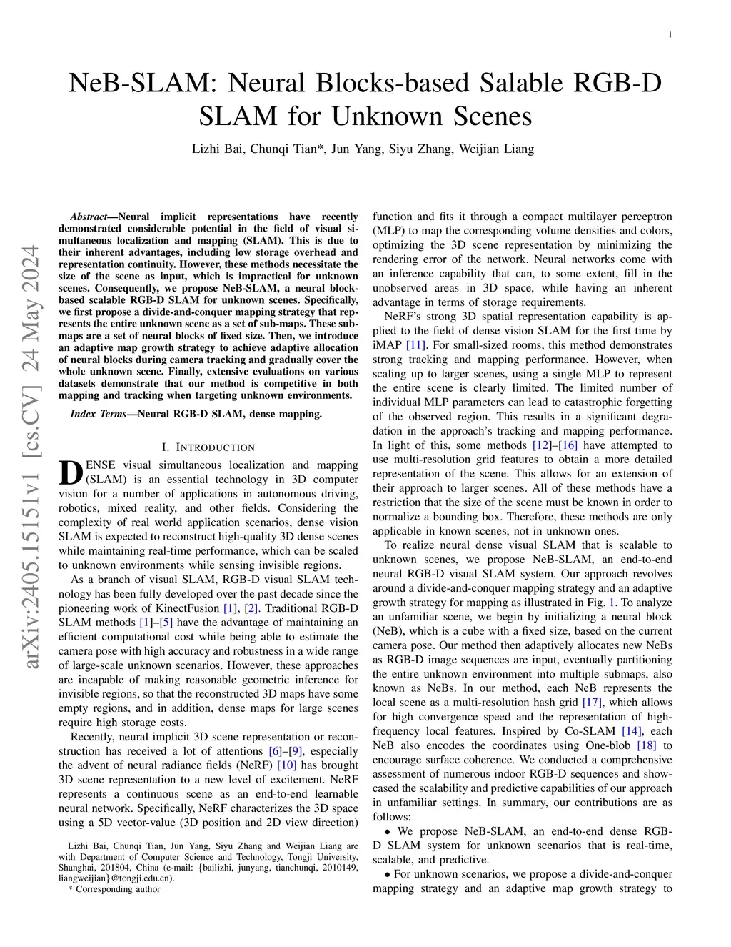 NeB-SLAM: Neural Blocks-based Salable RGB-D SLAM for Unknown Scenes