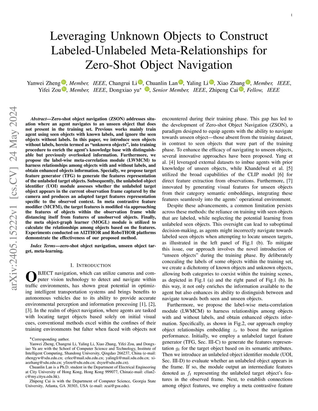 Zero-shot object navigation (ZSON) addresses situation where an agent navigates to an unseen object that does not present in the training set. Previous works mainly train agent using seen objects with known labels, and ignore the seen objects without labels. In this paper, we introduce seen objects without labels, herein termed as ``unknown objects'', into training procedure to enrich the agent's knowledge base with distinguishable but previously overlooked information. Furthermore, we propose the label-wise meta-correlation module (LWMCM) to harness relationships among objects with and without labels, and obtain enhanced objects information. Specially, we propose target feature generator (TFG) to generate the features representation of the unlabeled target objects. Subsequently, the unlabeled object identifier (UOI) module assesses whether the unlabeled target object appears in the current observation frame captured by the camera and produces an adapted target features representation specific to the observed context. In meta contrastive feature modifier (MCFM), the target features is modified via approaching the features of objects within the observation frame while distancing itself from features of unobserved objects. Finally, the meta object-graph learner (MOGL) module is utilized to calculate the relationships among objects based on the features. Experiments conducted on AI2THOR and RoboTHOR platforms demonstrate the effectiveness of our proposed method.
