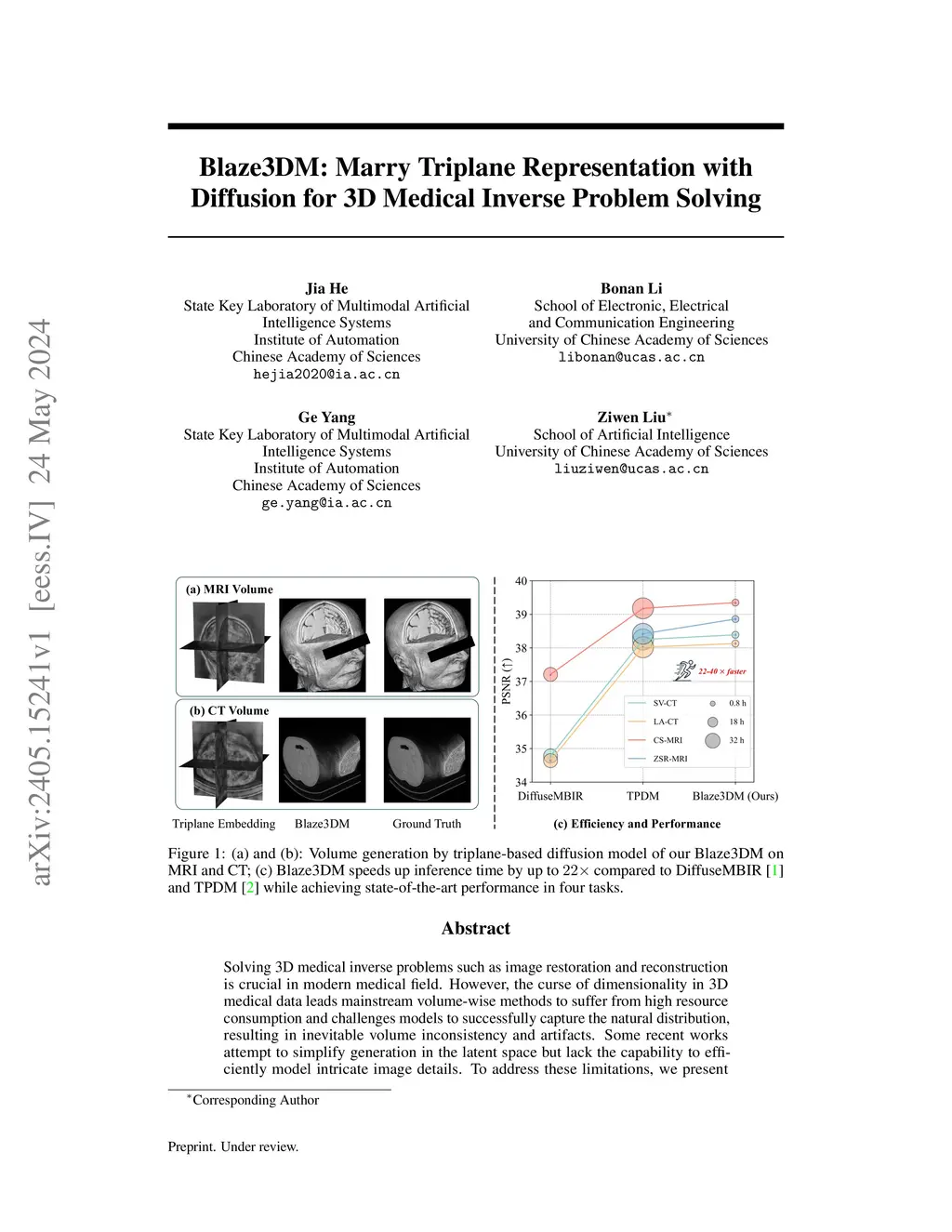 Blaze3DM: Marry Triplane Representation with Diffusion for 3D Medical