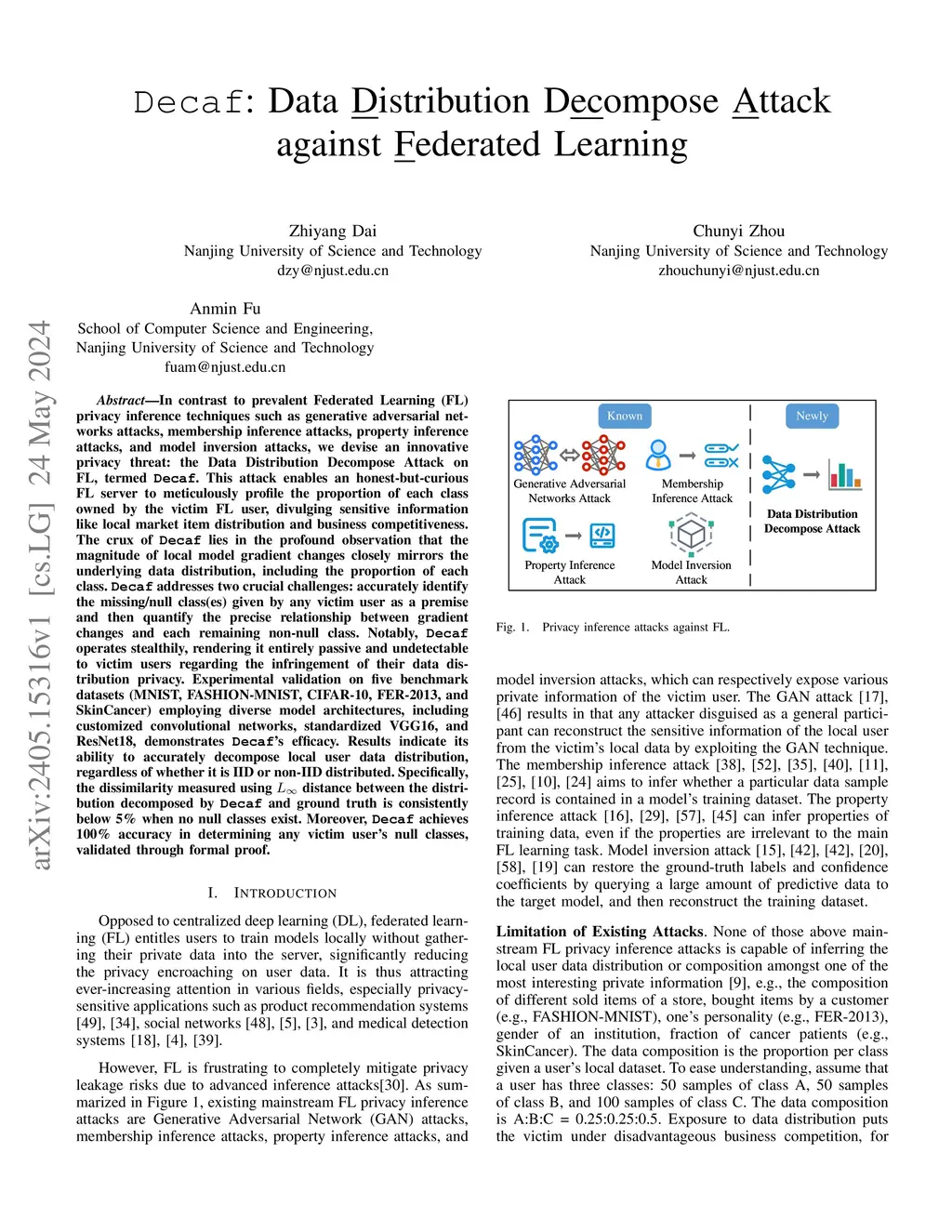 Decaf: Data Distribution Decompose Attack against Federated Learning