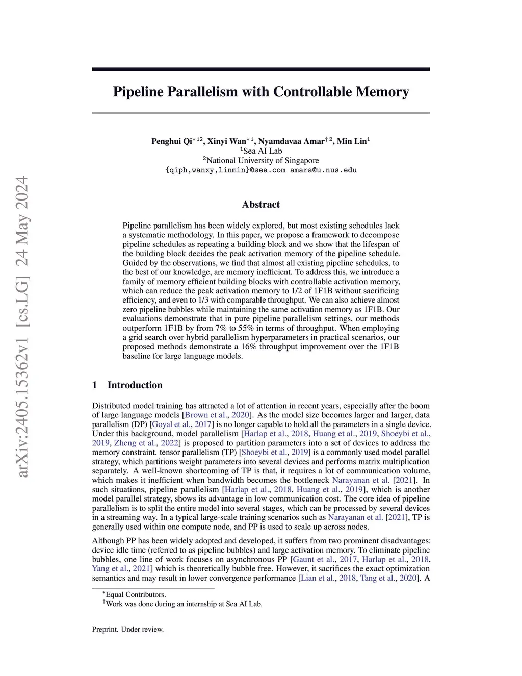 Pipeline Parallelism with Controllable Memory