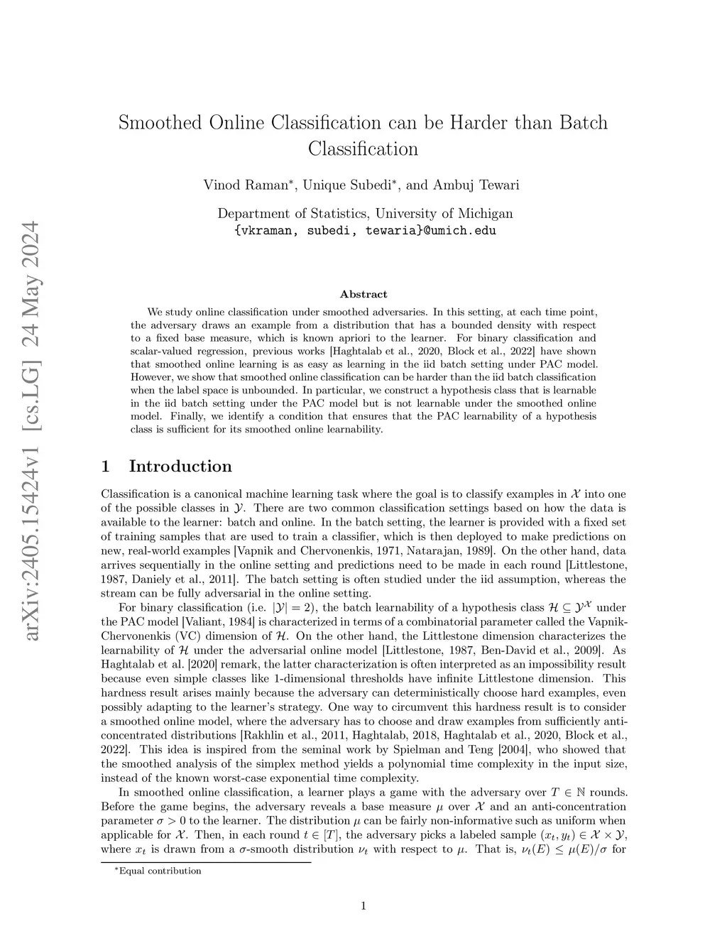 Smoothed Online Classification can be Harder than Batch Classification