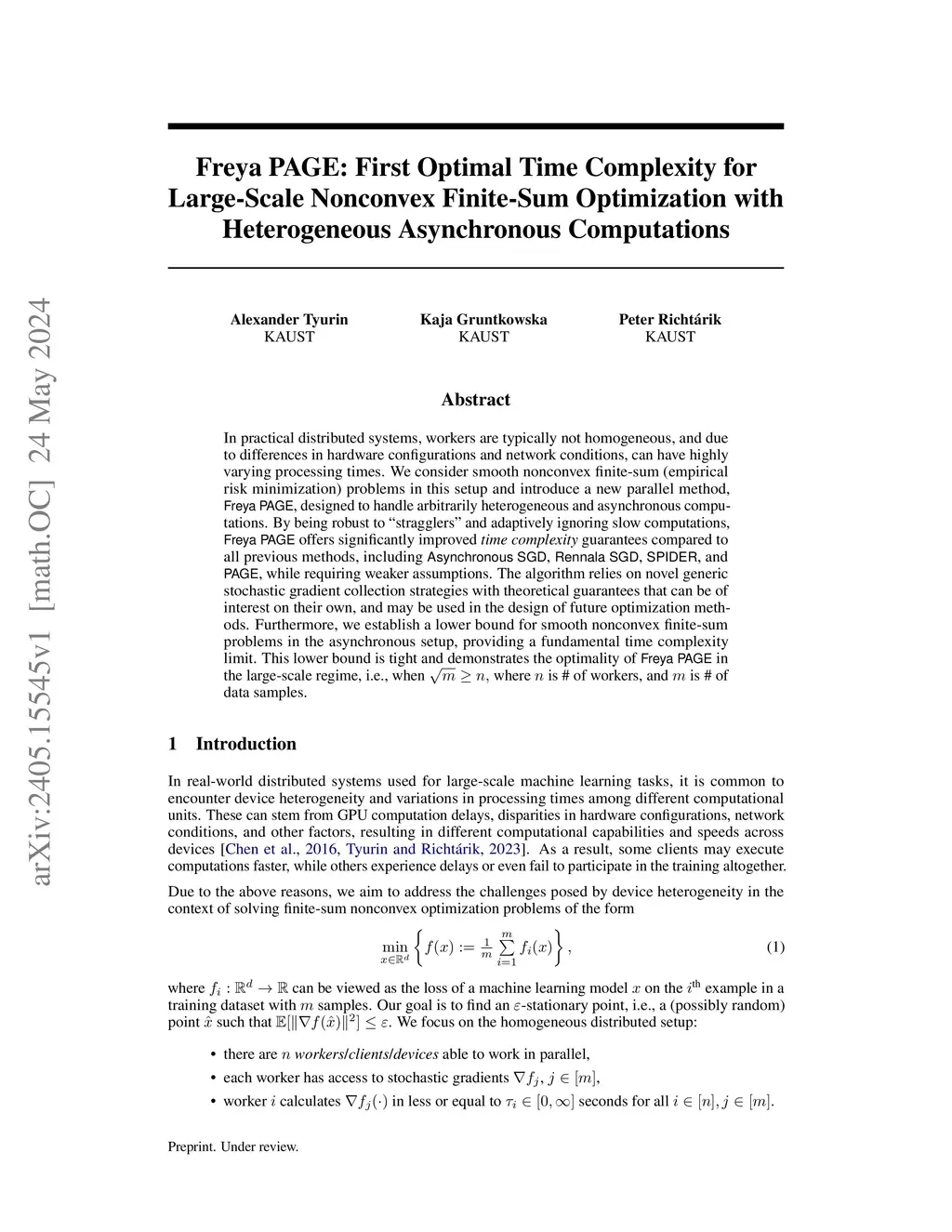 In practical distributed systems, workers are typically not homogeneous, and due to differences in hardware configurations and network conditions, can have highly varying processing times. We consider smooth nonconvex finite-sum (empirical risk minimization) problems in this setup and introduce a new parallel method, Freya PAGE, designed to handle arbitrarily heterogeneous and asynchronous computations. By being robust to "stragglers" and adaptively ignoring slow computations, Freya PAGE offers significantly improved time complexity guarantees compared to all previous methods, including Asynchronous SGD, Rennala SGD, SPIDER, and PAGE, while requiring weaker assumptions. The algorithm relies on novel generic stochastic gradient collection strategies with theoretical guarantees that can be of interest on their own, and may be used in the design of future optimization methods. Furthermore, we establish a lower bound for smooth nonconvex finite-sum problems in the asynchronous setup, providing a fundamental time complexity limit. This lower bound is tight and demonstrates the optimality of Freya PAGE in the large-scale regime, i.e., when , where is # of workers, and is # of data samples.