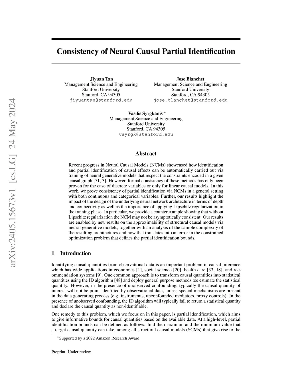 Consistency of Neural Causal Partial Identification