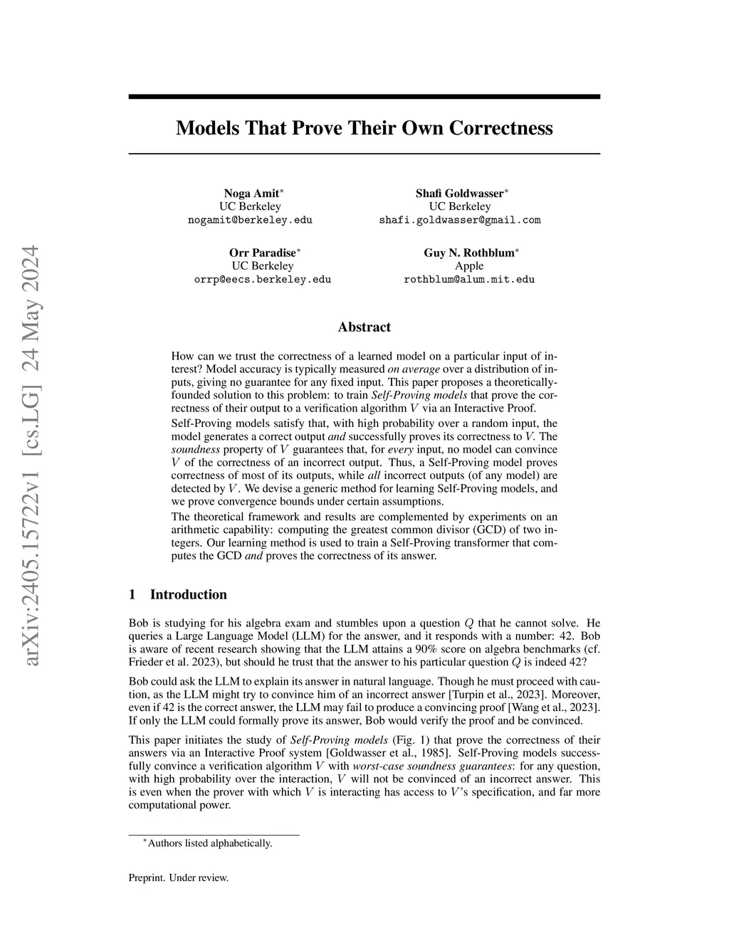 Models That Prove Their Own Correctness