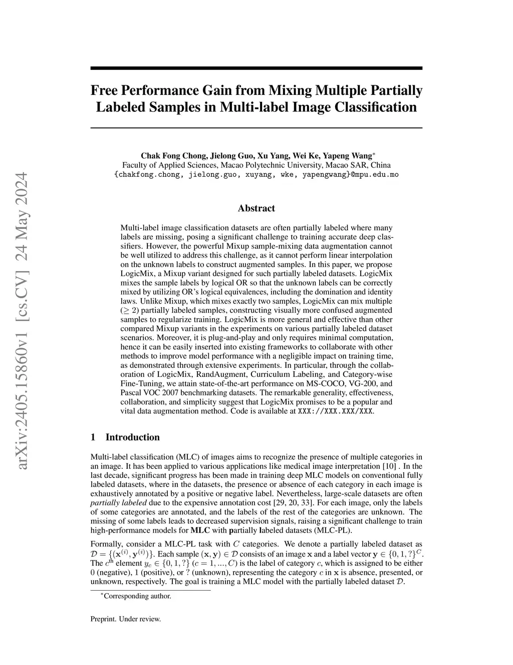 Multi-label image classification datasets are often partially labeled where many labels are missing, posing a significant challenge to training accurate deep classifiers. However, the powerful Mixup sample-mixing data augmentation cannot be well utilized to address this challenge, as it cannot perform linear interpolation on the unknown labels to construct augmented samples. In this paper, we propose LogicMix, a Mixup variant designed for such partially labeled datasets. LogicMix mixes the sample labels by logical OR so that the unknown labels can be correctly mixed by utilizing OR's logical equivalences, including the domination and identity laws. Unlike Mixup, which mixes exactly two samples, LogicMix can mix multiple () partially labeled samples, constructing visually more confused augmented samples to regularize training. LogicMix is more general and effective than other compared Mixup variants in the experiments on various partially labeled dataset scenarios. Moreover, it is plug-and-play and only requires minimal computation, hence it can be easily inserted into existing frameworks to collaborate with other methods to improve model performance with a negligible impact on training time, as demonstrated through extensive experiments. In particular, through the collaboration of LogicMix, RandAugment, Curriculum Labeling, and Category-wise Fine-Tuning, we attain state-of-the-art performance on MS-COCO, VG-200, and Pascal VOC 2007 benchmarking datasets. The remarkable generality, effectiveness, collaboration, and simplicity suggest that LogicMix promises to be a popular and vital data augmentation method.