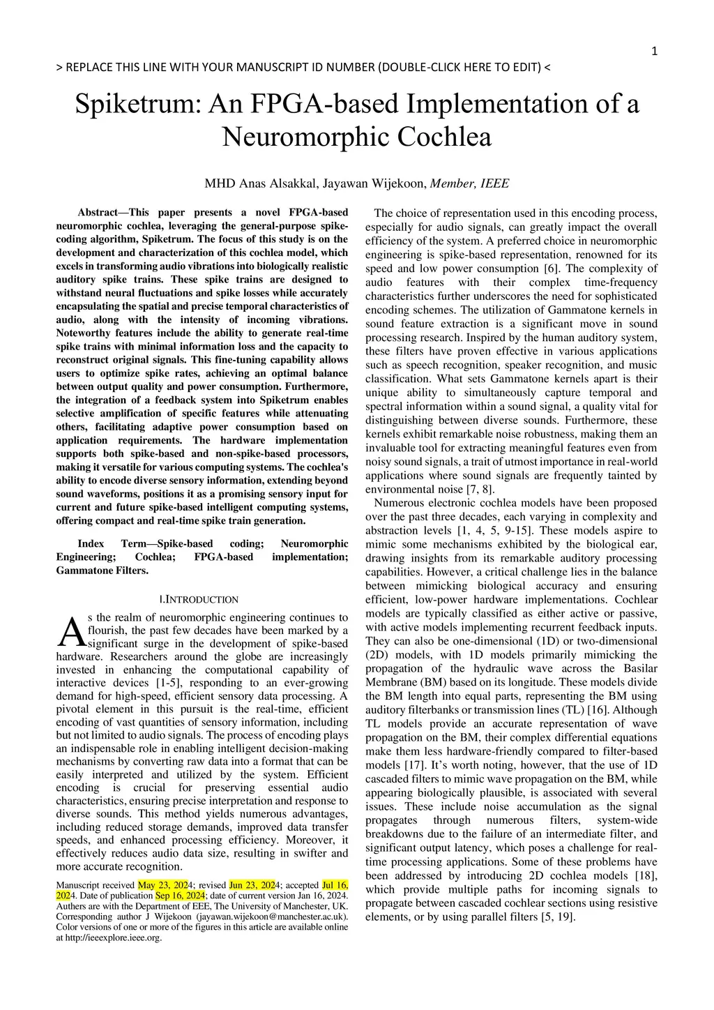 Spiketrum: An FPGA-based Implementation of a Neuromorphic Cochlea