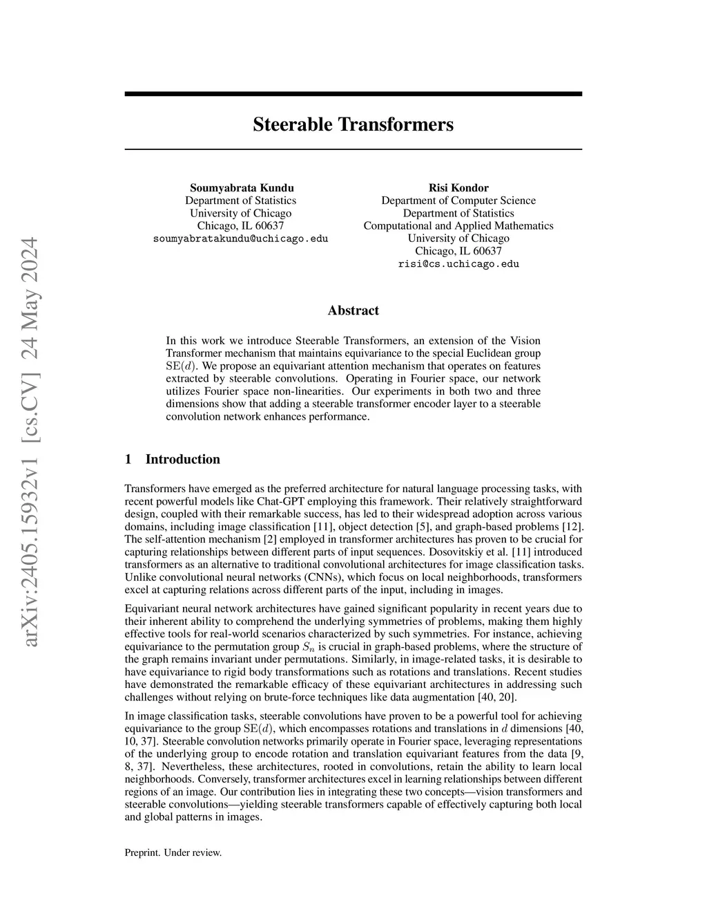 We introduce Steerable Transformers, an extension of the Vision Transformer mechanism that maintains equivariance to the special Euclidean group . We propose an equivariant attention mechanism that operates on features extracted by steerable convolutions. Operating in Fourier space, our network utilizes Fourier space non-linearities. Our experiments in both two and three dimensions show that adding steerable transformer layers to steerable convolutional networks enhances performance.