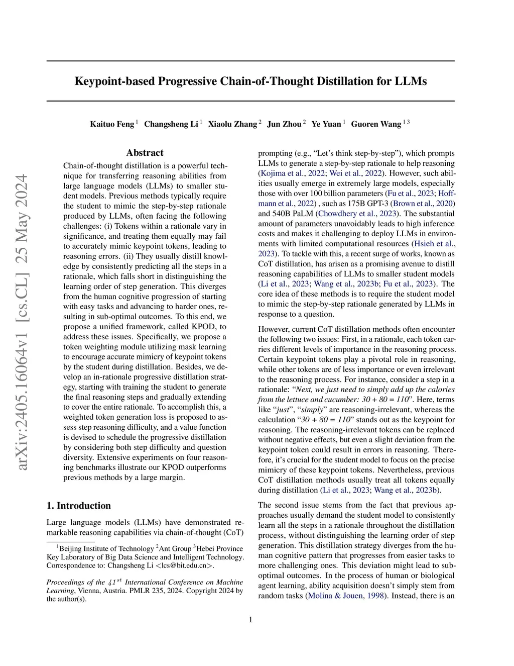 Keypoint-based Progressive Chain-of-Thought Distillation for LLMs