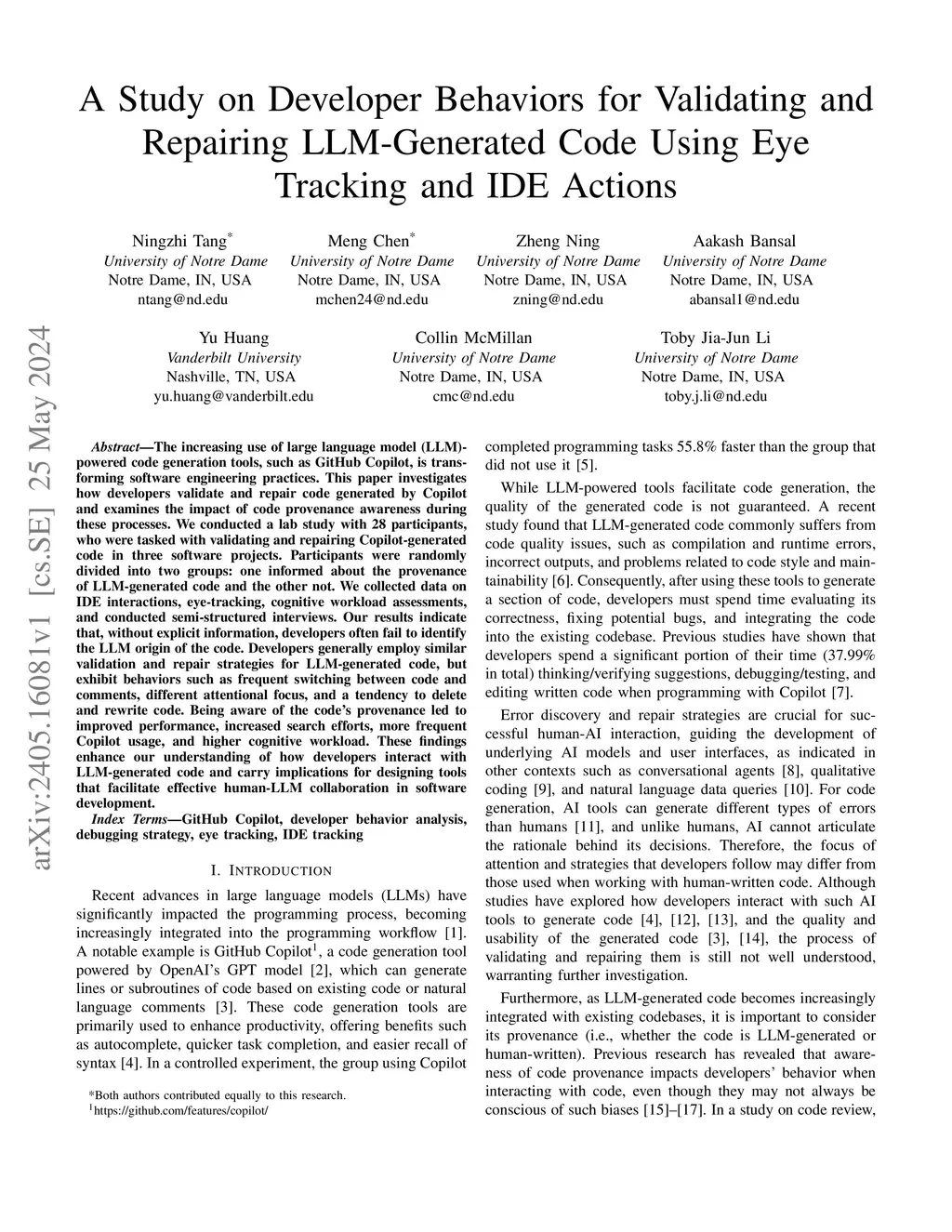 LLM-Generated Code Using Eye Tracking and IDE Actions