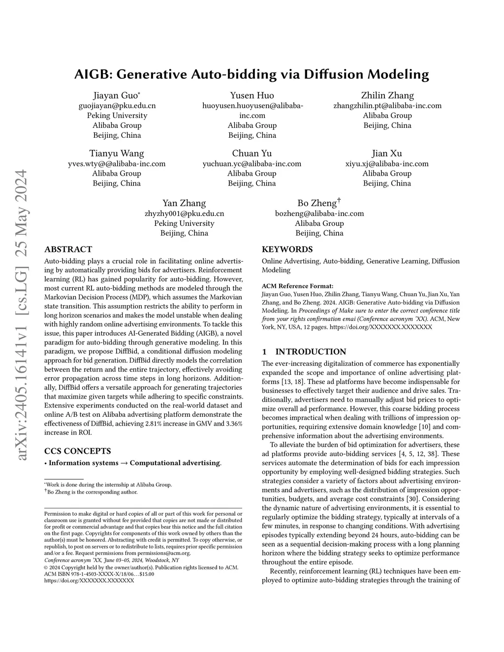 AIGB: Generative Auto-bidding via Diffusion Modeling