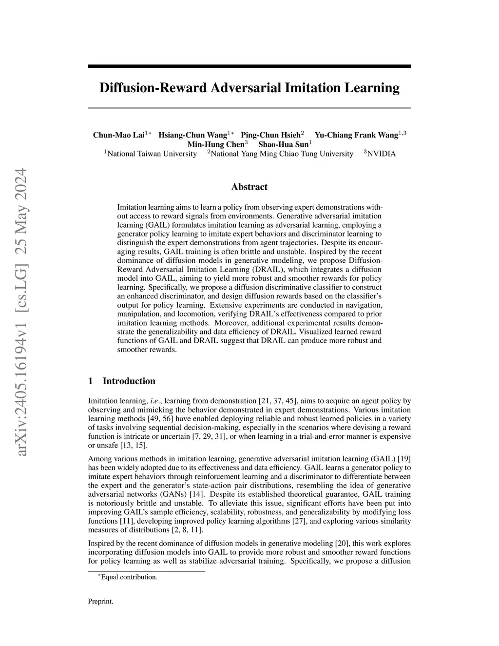 Diffusion-Reward Adversarial Imitation Learning