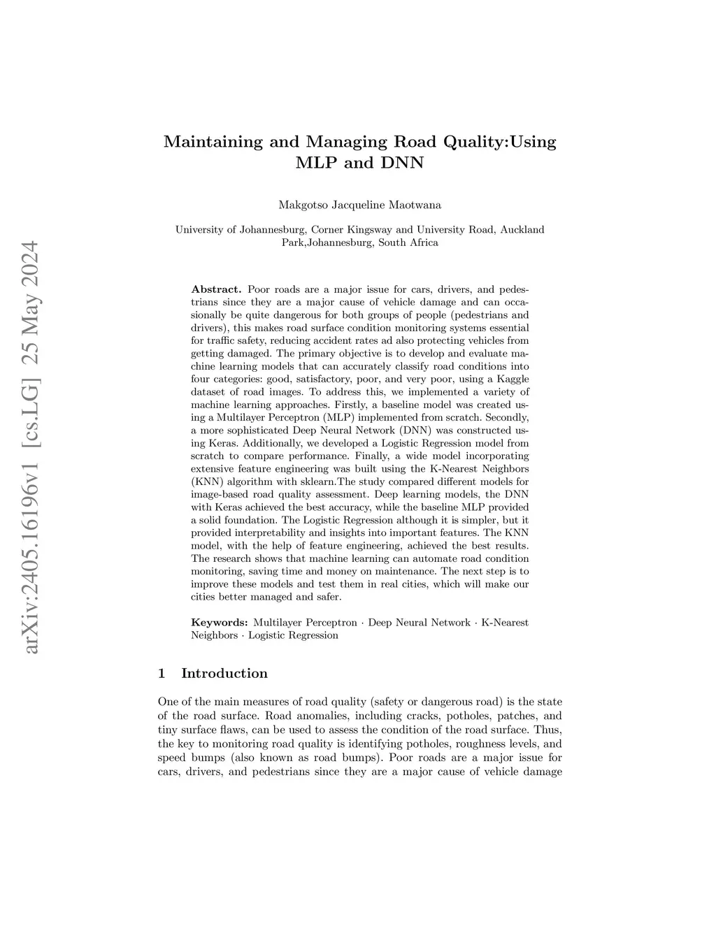 Maintaining and Managing Road Quality:Using MLP and DNN
