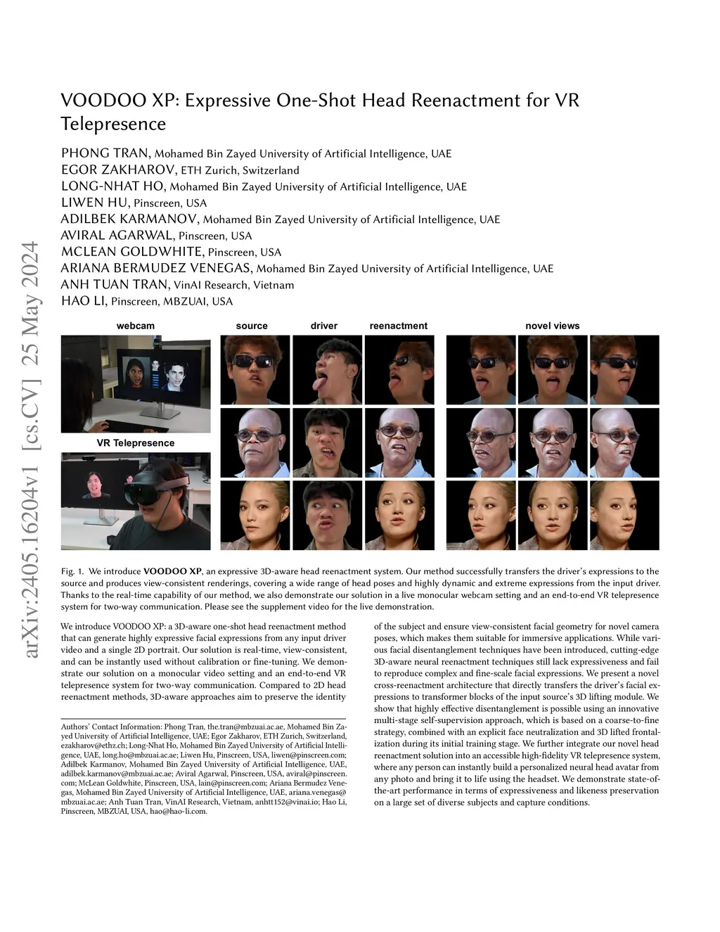 VOODOO XP: Expressive One-Shot Head Reenactment for VR Telepresence