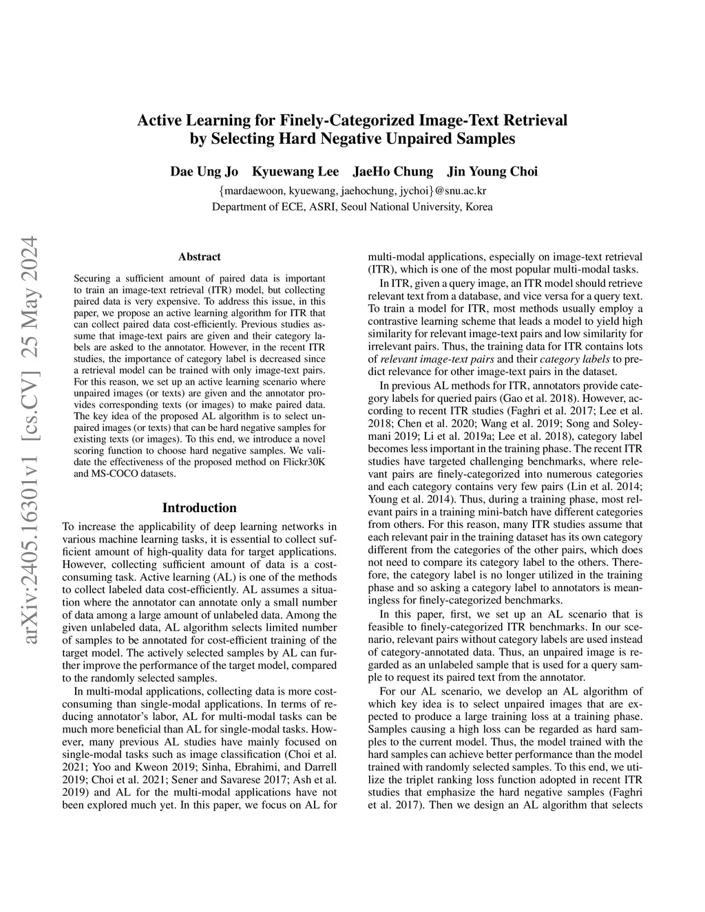 Active Learning for Finely-Categorized Image-Text Retrieval by Selecting