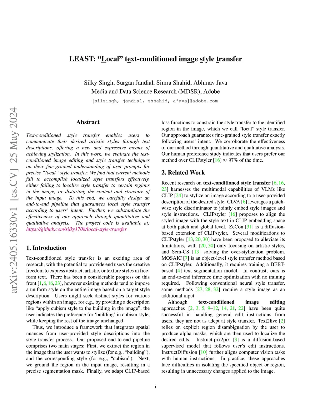 LEAST: "Local" text-conditioned image style transfer