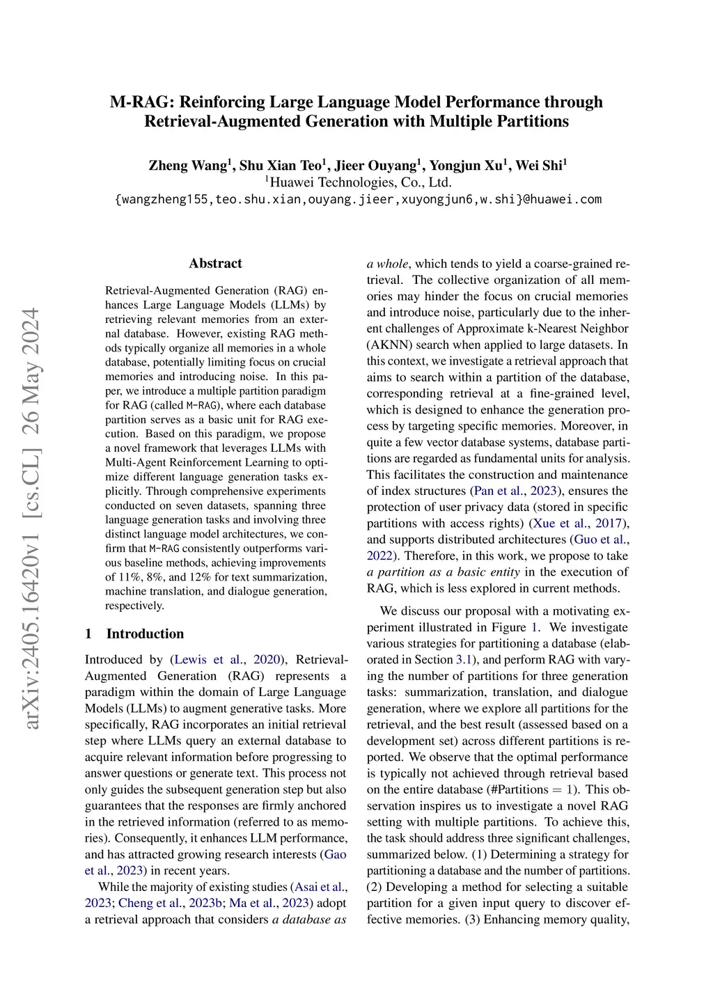 M-RAG: Reinforcing Large Language Model Performance through