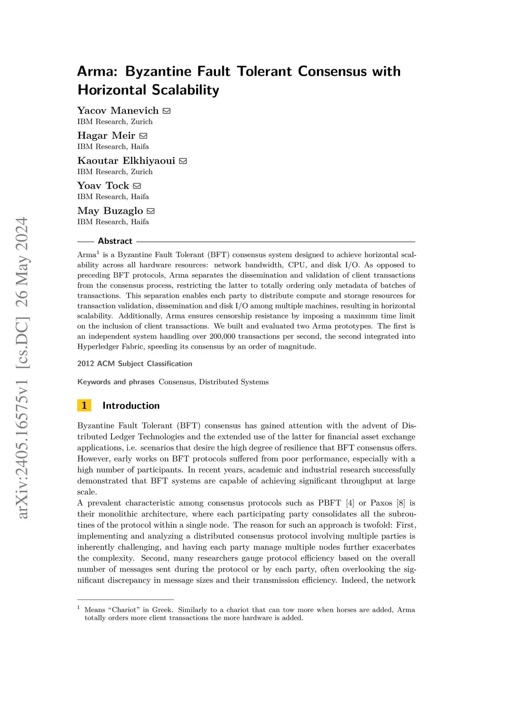 Arma: Byzantine Fault Tolerant Consensus with Horizontal Scalability