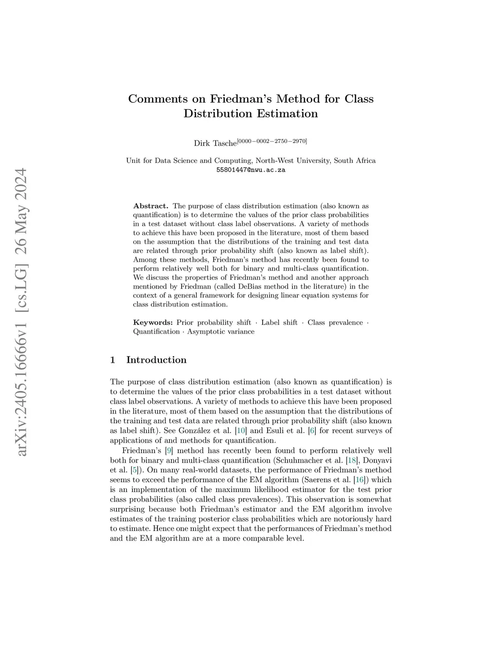 Comments on Friedman's Method for Class Distribution Estimation