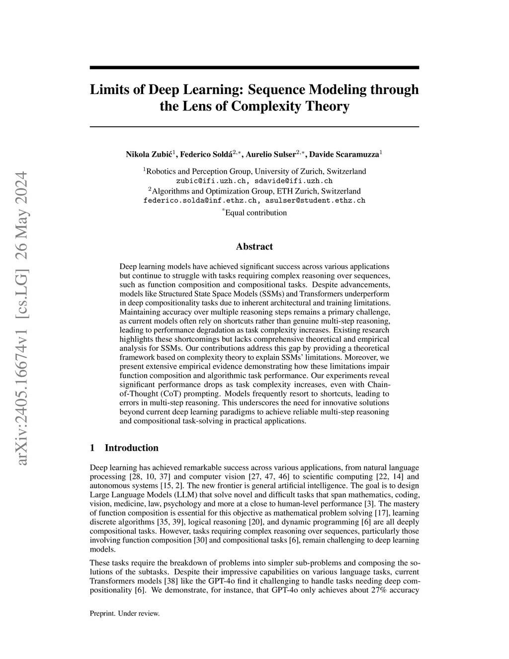 Limits of Deep Learning: Sequence Modeling through the Lens of Complexity Theory